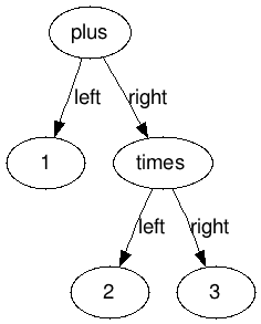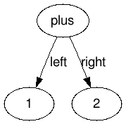 Notice that we explicitely made the decision to use a binary tree structure: each addition node will have two children. This means that an expression such as 1 + 2 + 3 must be expressed like this: